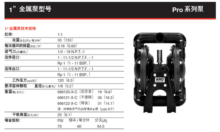 美國ARO 英格索蘭氣動隔膜泵 PRO系列 選型樣冊