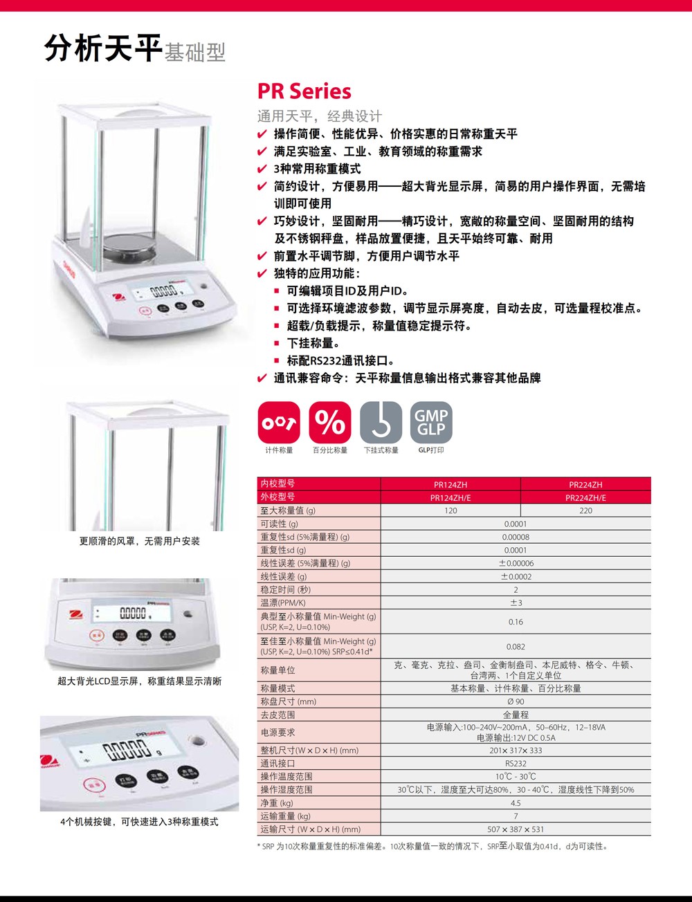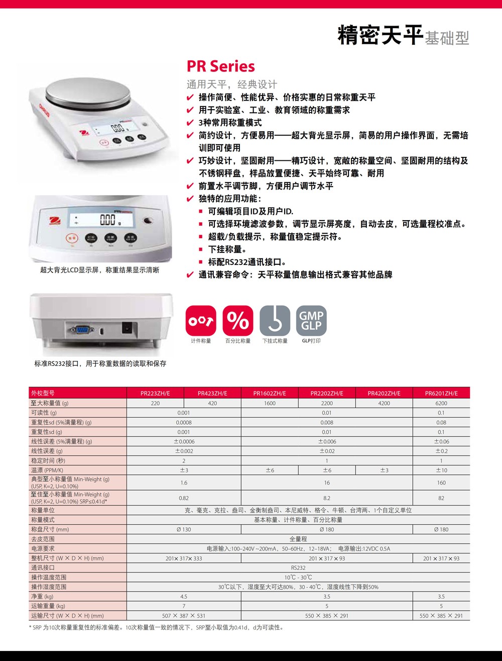 奧豪斯稱重天平PR系列分析天平實驗室基礎電子秤工業(yè)通用精密天平