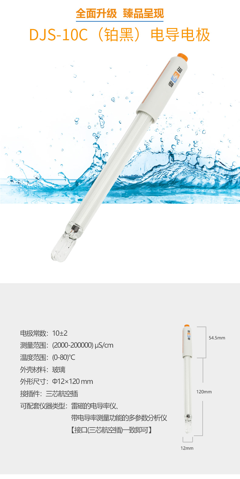 【雷磁】 實驗室電導率傳感器 DJS-10C型電導電極