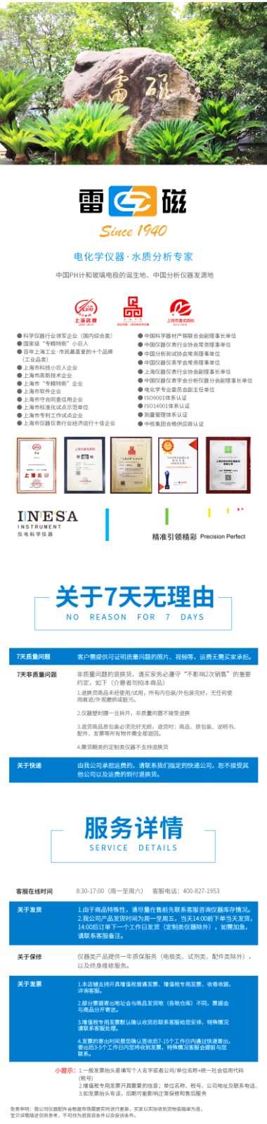 【雷磁】雷磁高端ph電極高精度 962244細長ph復合電極