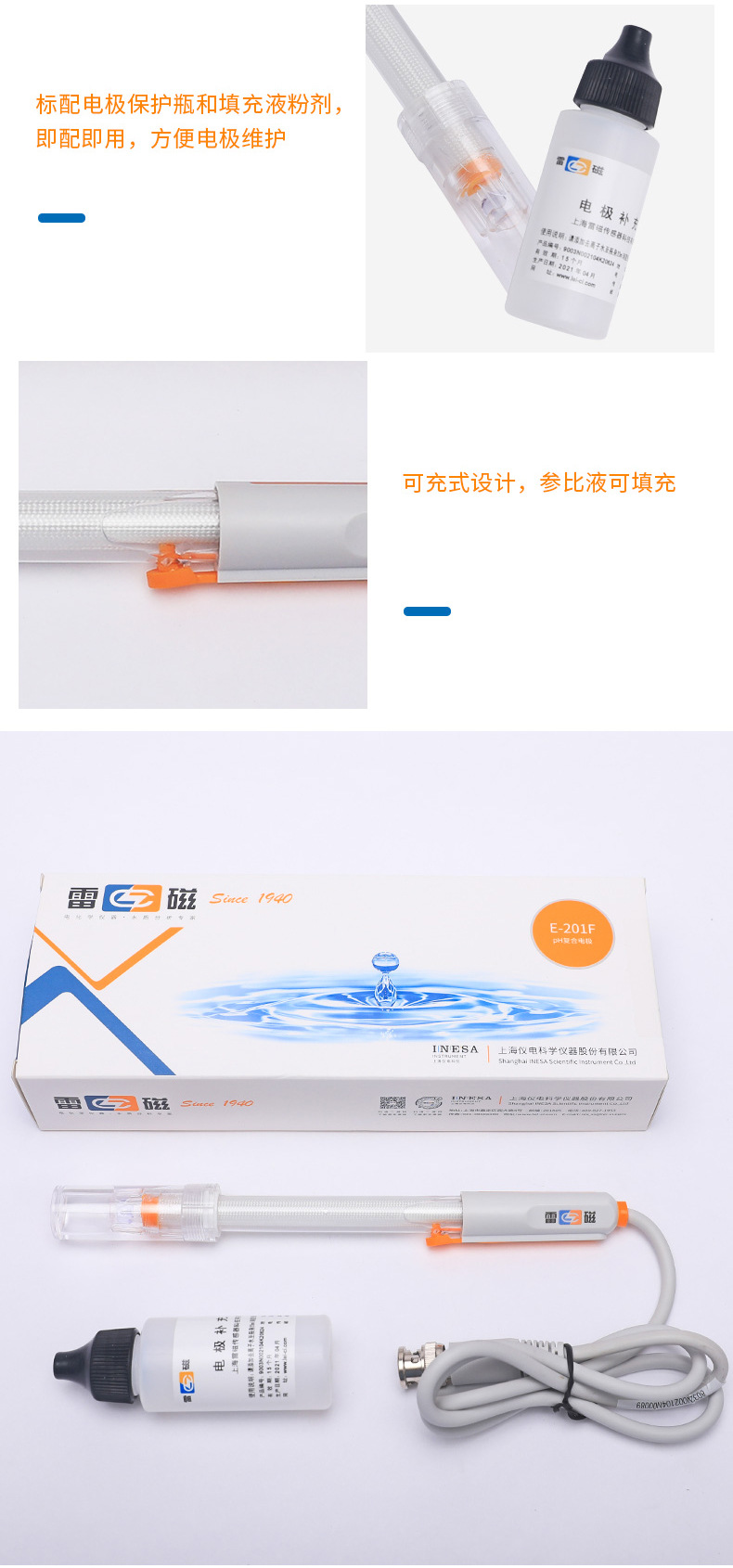 雷磁 E-201F 型 pH 電極傳感器 實驗室便攜式復合電極 ph 檢測探頭