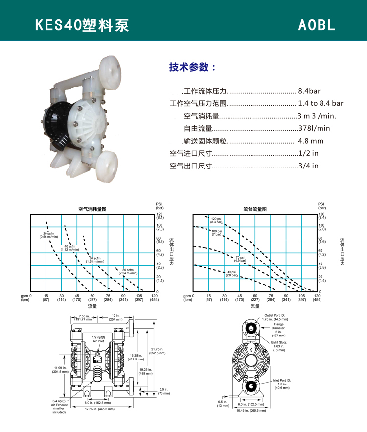 (AOBL)氣動隔膜泵KES40系列工程塑料泵